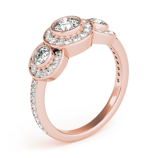 14k Rose Gold Three Stone Round Engagement Rings