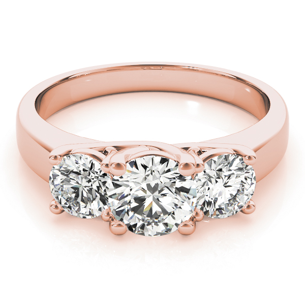 14k Rose Gold Three Stone Round Engagement Rings