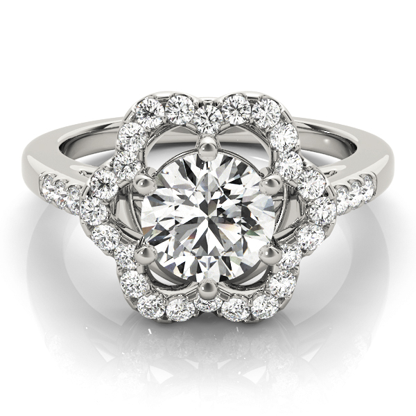 14K White Gold Halo Round Engagement Rings