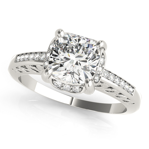 14K White Gold Single Row Cushion Engagement Rings