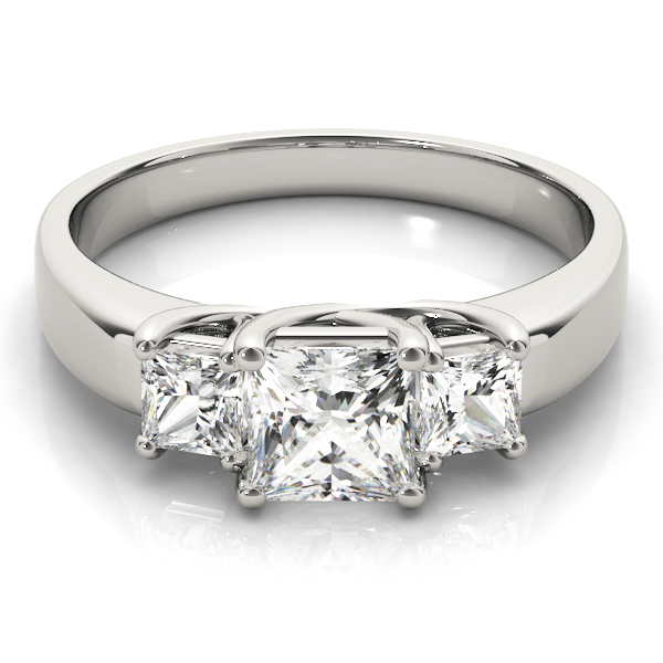 14k White Gold Three Stone Princess Engagement Rings