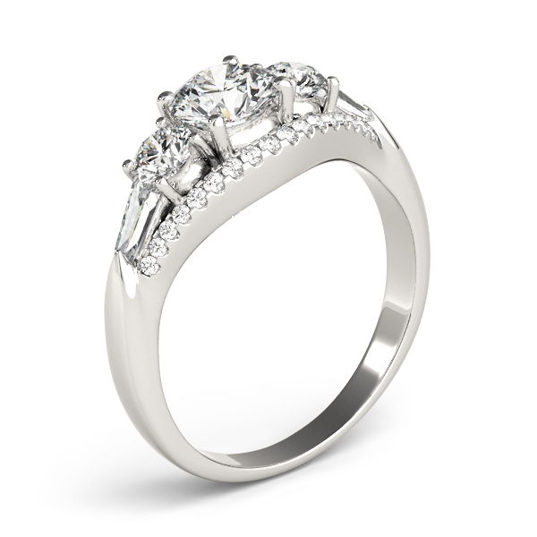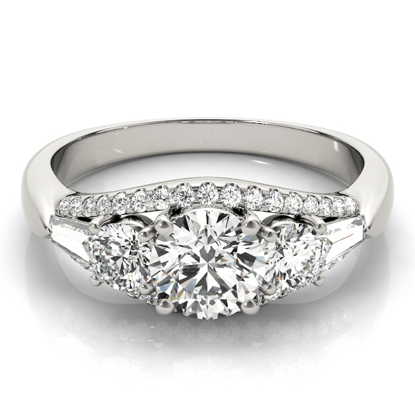 14K White Gold Three Stone Round Engagement Rings