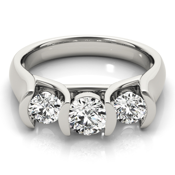 14k White Gold Three Stone Round Engagement Rings