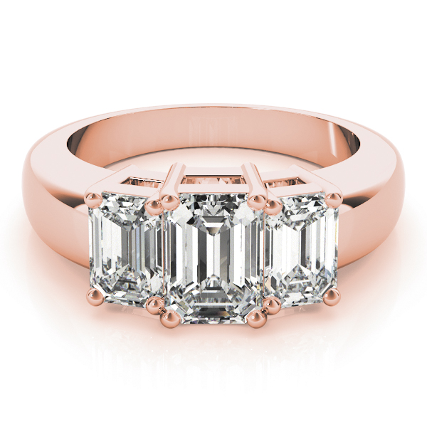 18K Rose Gold Three Stone Emerald Engagement Rings