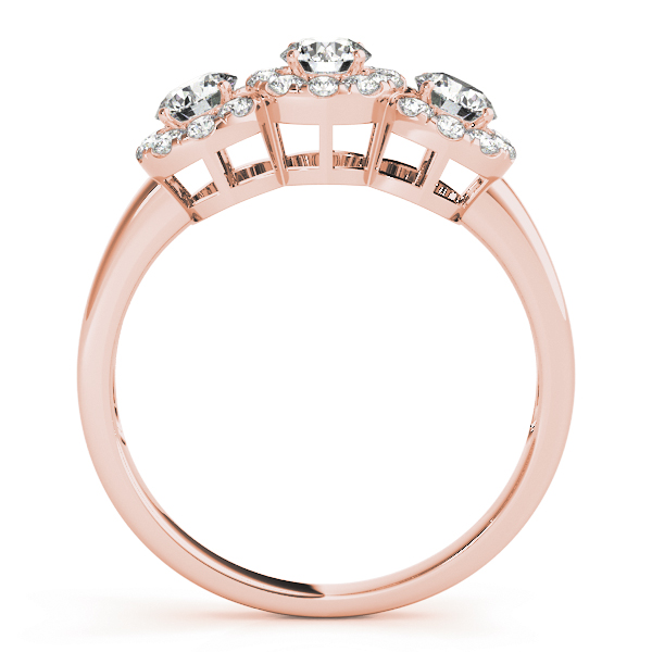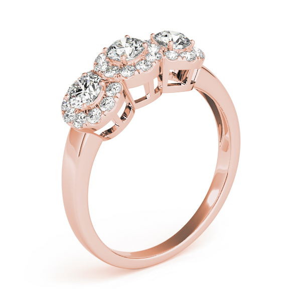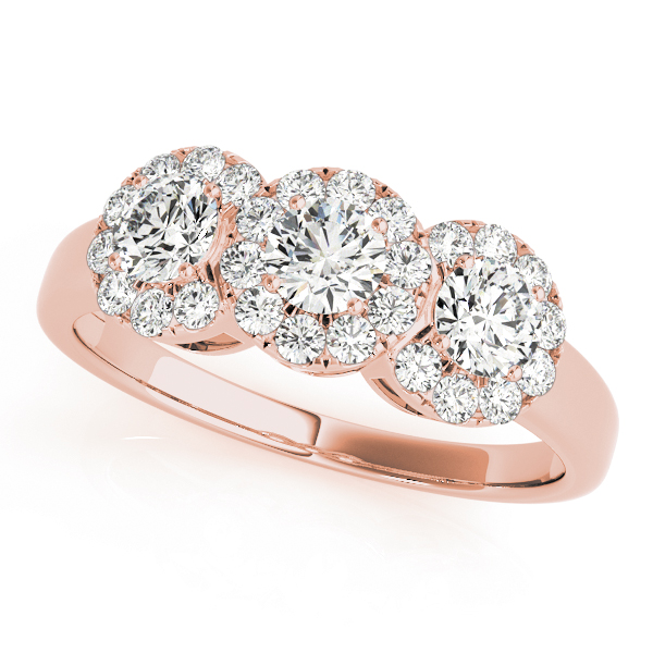 18K Rose Gold Three Stone Round Engagement Rings