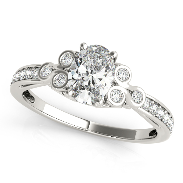 18K White Gold Single Row Oval Engagement Rings