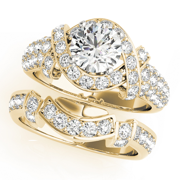 18k Yellow Gold Multirow Round Engagement Rings